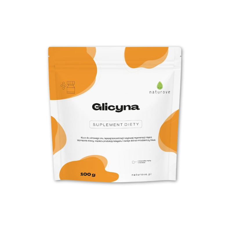 Glicyna to kluczowy aminokwas. Działa jako neuroprzekaźnik, pomagając w redukcji stresu i poprawie nastroju. Wspiera również syntezę kolagenu, korzystnie wpływając na skórę i stawy.